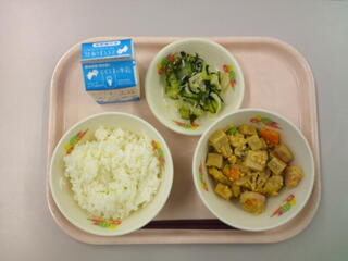 ごはん 牛乳 高野豆腐の卵とじ わかめときゅうりの酢の物