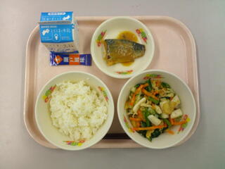 ごはん 牛乳 さばのみそ煮 小松菜のおひたし 瀬戸風味ふりかけ