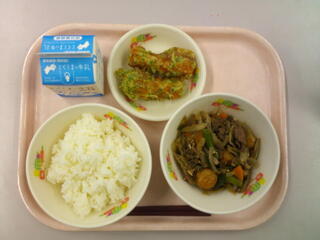 ごはん 牛乳 ちくわのいそべ揚げ 大豆入りきんぴらごぼう