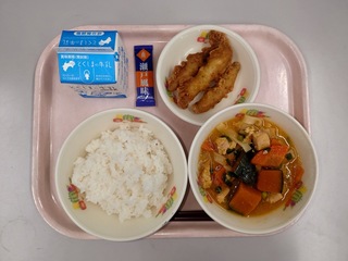 ごはん 瀬戸風味ふりかけ 牛乳 ほうとううどん わかさぎのフリッター