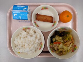 麦ごはん 牛乳 野菜炒め あげ春巻き みかん