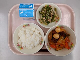 ごはん 牛乳 肉だんごの酢豚風 アスパラのツナあえ