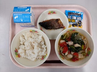 麦ごはん 牛乳 すまし雑煮 ぶりの照り焼き いり黒豆