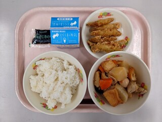 ごはん ひじき入りのり佃煮 牛乳 おでん わかさぎのフリッター