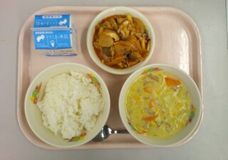 ごはん♪ハンバーグのきのこソースかけ♪コーンポタージュ♪牛乳♪