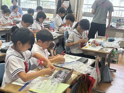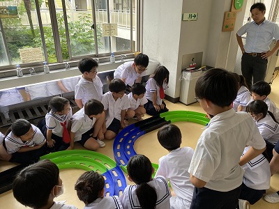 目標:乾電池1個の時よりもモーターが回る速さを速くするために乾電池を2個使い、どのようにつなげば速くなるかを考え、根拠ととも表現できる。